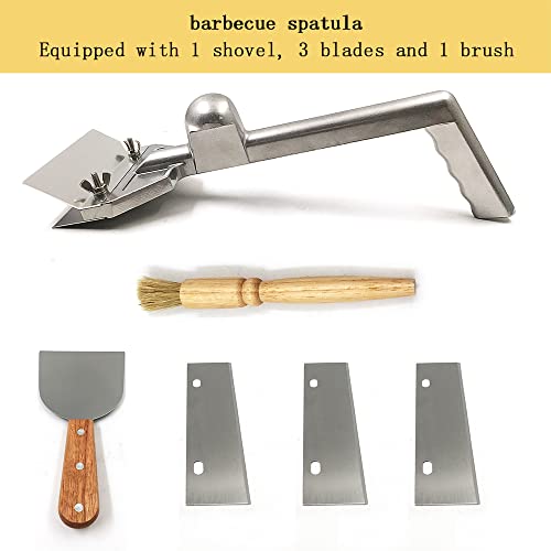 Botiliceer Grill Scraper Heavy Duty Griddle Scraper Flat Top Grill Accessories Barbecue Cooking Tool with 1 Shovel 3 Blades and 1 Brush for Outdoor Grill