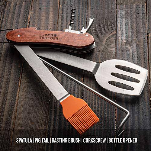 TraegerBrand: TraegerFeatures: Includes portable-sized spatula, pig tail, basting brush, and corkscrew Perfect for grilling on the go Hand wash only Stor...