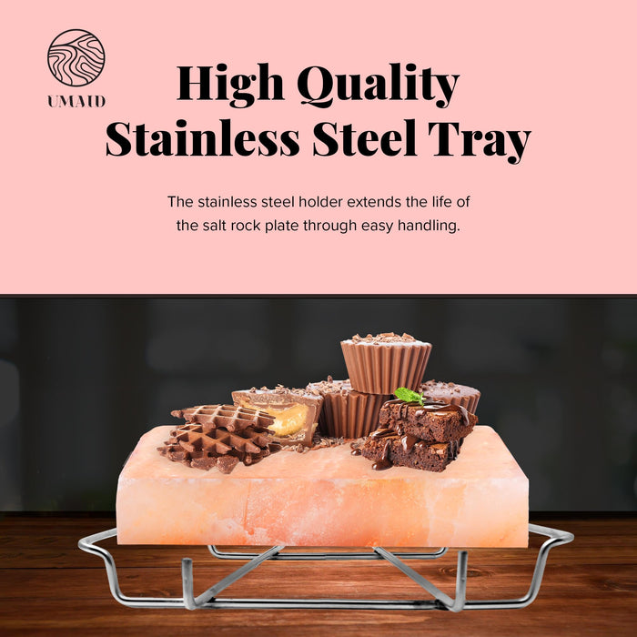 - HIGH QUALITY METAL TRAY: The Salt Block Holder is made out of high quality stainless steel that provides the sturdy support and protection to extend your Salt Block's life, It works as a frame to keep the salt slab pieces together, so you can keep on grilling, The Quality Holder Extends Life of Salt rock Plate through easy handling.