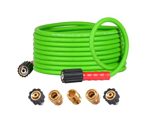 View full detailsYAMATIC Pro Flexible Pressure Washer Hose for Gas Electric Power Washer Replacement, 25 FT Kink Resistant Extension With 3/8" Quick Connect Adapters, Leak-Free M22 Fittings, 1/4" 3200 PSI, Green