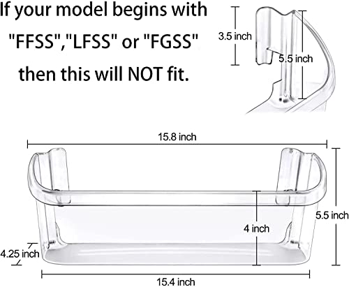 - 【Notice Before Buying】This 240323002 door bin dimension is 15.8"L x 4.25"D x 5.5"H. This will be the 2 bottom racks of fridge only and it will NOT fit the top 2 bin/racks and will NOT fit the freezer side racks. If the max length of your bin is less than 15.7 in, then you will need 240363702 or 242126602 instead and this will NOT fit your model.