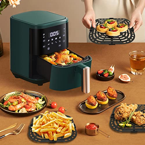 - 【Easy To Use】The fryer pan has a handle design in the middle that is easy to place into the fryer basket or remove, and the fryer is non-stick coated for easy food removal! Each side is equipped with 1 rubber buffer to effectively protect the inside of the air fryer from scratches.
