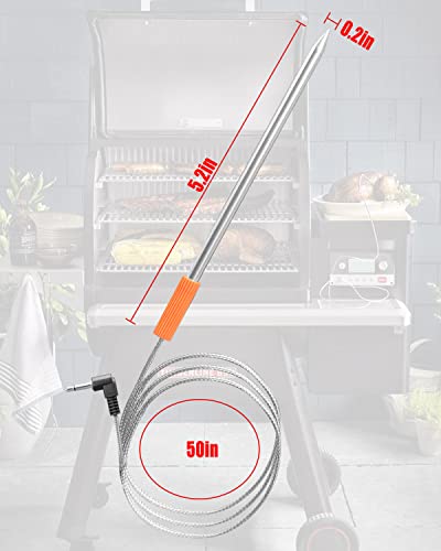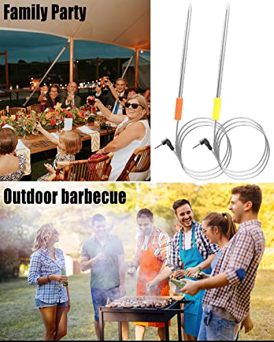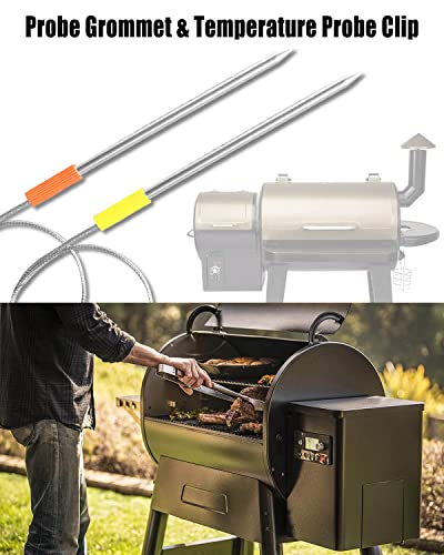 2 Pcs Meat Probe Thermometer Fit for Oklahoma Joe's Rider Z Grills Cuisinart Wood Pellet Gril Smoker Barbecue Rack, Meat Temp Probe for Smokers with Temperature Probe Clip and Probe Grommet