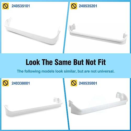 - 🐳【Package Includes】 :240534701 X 1 and 240534901 X1. 2-pack frigidaire Door Shelf Rack Strip replacement. It does not replace 240338001,240535101,240535001,280535201, although these look similar to article 240534701 and 240534901 door shelf, but the size is different, it's easy to order mistake, if you have any questions, please feel free to contact us