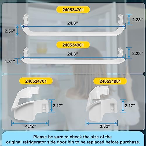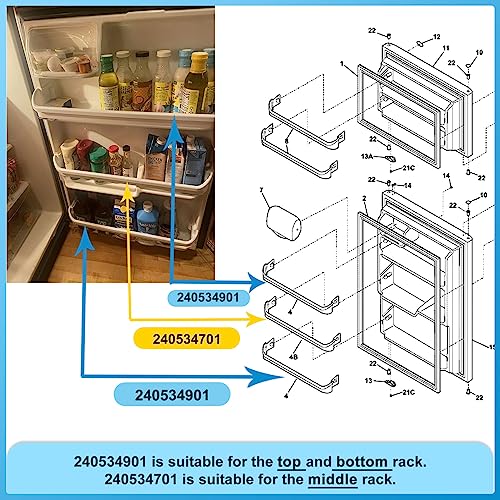 - 🐳【Notice】 :240534701 & 240534901 frigidaire Door Bar Retainer can be used on the same refrigerator. Part 240534901 is for the top and bottom rack of the refrigerator, and Part 240534701 is for the middle rack! Please measure your door box before ordering. If you are still unsure whether the replacement door shelf guide is suitable for your refrigerator, please contact us