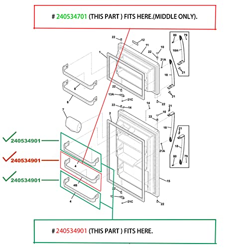 - ✅【NOTE】 240534701 & 240534901 frigidaire refrigerator door bar retainer can be used in the same refrigerator. Part 240534901 is for the top and bottom rack of your fridge, 240534701 part is for the middle rack! Please measure the size and confirm your refrigerator model before ordering.