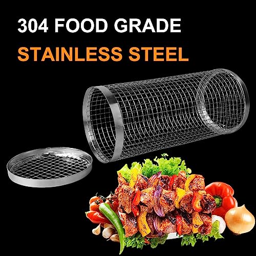 2PCS Rolling Grilling Baskets,Outdoor Grill Bbq Net Tube,304 Stainless Steel Grilling Baskests,Large Cooking Accessories for Veggies Vegetable