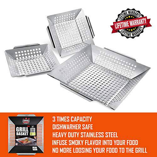 3 Pack Grill Baskets for Outdoor Grill, Heavy Duty Stainless Steel Vegetable Grill Basket
