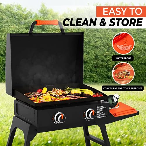 • [Suitable Size] Griddle Mat for Blackstone griddles 17", 22", 28", and 36", high-quality silicone covers the griddle surface completely. It does not contain any magnets underneath, ensuring a sealed surface and easy cleaning of the drip tray.