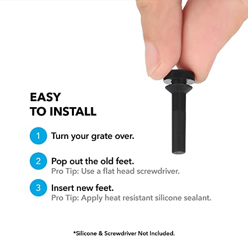 - Easy to Install Value Pack: Simply turn your grate over, pop out the old Range Grate feet and put the new parts in their place. Apply a small amount of heat resistant silicone sealant before attaching (not included)