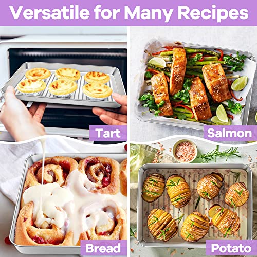 - 【1 PAN & 1 RACK】Includes 1 baking pan 9 x 7 x 1 inch and 1 cooling rack 8.75 x 6.25 x 0.75 inch, And three usages for you to choose, Single pan use, Single rack use, Pan and rack use together, Perfect for baking bread, roasting meats and veggies, cooling cookie, So many occasions you need them, like home kitchen, baking classroom, bakery, and canteen, A great gift for your friends and families on Christmas, Birthday, Thanksgiving and Housewarming