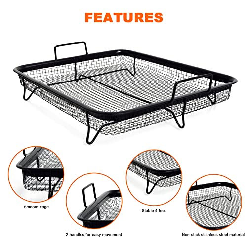 - 【Convection technology】Mesh crisper basket design promotes 360 degree airflow circulation, so even conventional ovens can operate with convection technology and air fry any food. Ideal for crisping up frozen snacks or healthy frying from scratch.For best results, evenly layer food. Crisping Basket Inside Dimension 11.25*10.25*1.25 in.