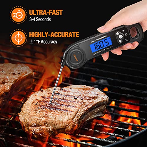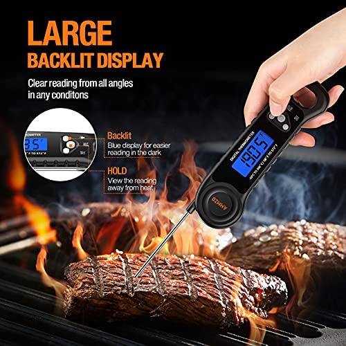 AMMZO Digital Meat Thermometer for Grilling, Instant Read Food Thermometer Waterproof with Backlight for Cooking, Deep Fry, BBQ, Grill, Smoker and Roast