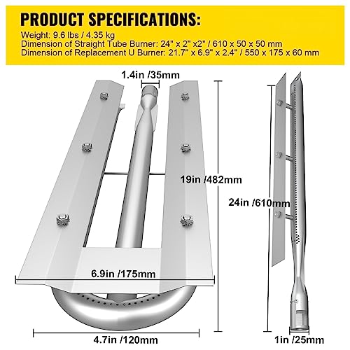 - Perfect Dimension: This grill burner is a perfect replacement for your barbecue oven. It includes a U burner of 21.3 x 6.9 and two straight tube burners of 24 in length. The package contains four bbq burners replacements, making your barbecue process more wonderful.