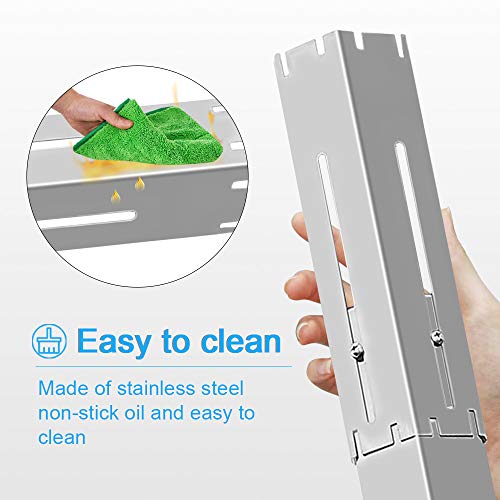 Details: Best Grill Replacement Parts - Adjustable length from 11.75" to 21", suitable for MOST gas grill such as charbroil, weber Heat Shield Connection way Universal Soild Stainless Steel Replacement Heat Plate, works with front to back burner alignment or side to side alignment. Heat Plate Shield Dimension:11.75” up to 21” in length, 3.75” in width Material:Heavy duty stainless steel, this grill replacement parts are thicker than original ones, last longer, easy to clean and help bbq better