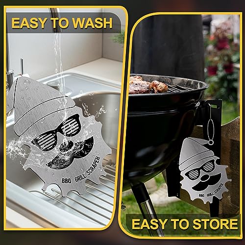 - 【Ideal BBQ Tool Gift】: the grill scraper fits most indoor and outdoor grills, kitchen, outdoor, backyard can be used, bbq grill scraper is an ideal BBQ gift Christmas stocking stuffers for men women husband wife dad mom, a must have for men Grill gadgets. It is also a special gift for family and friends.