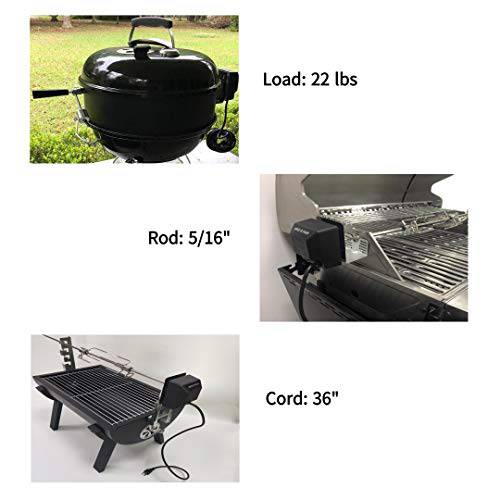 - Universal Rotisserie Motor Replacement: Fits for Weber, Char-Broil, GrillPro, Brinkmann, Char-Griller, Napoleon etc. Fits standard 3'' motor mounts and standard 5/16'' square drive rotisserie spit rods; Recommend you measure the size of your spit rods and compare with the replacements BEFORE you order.
