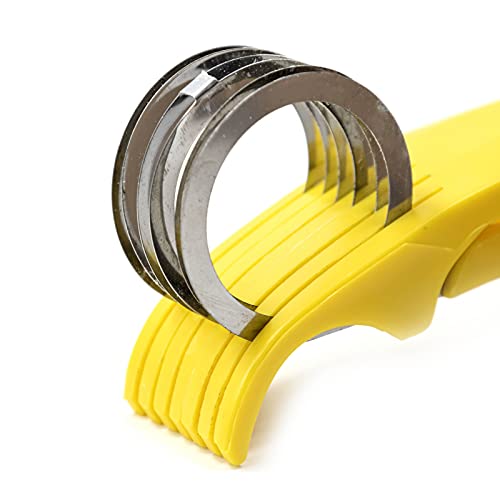 - ESSENTIAL KITCHEN TOOL – Featuring durable stainless steel blades that won’t rust, the Beille Fruit and Vegetable Slicer provides a quick solution to tedious food preparation tasks. Easily and rapidly slice your hard boiled eggs, bananas, mushrooms, strawberries, kiwis and so much more! Simply hold the handheld food slicer over any bowl or plate with the desired food nestled next to the stainless steel blades and squeeze the handle for uniform slices.