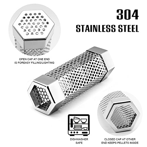 BEWAVE Pellet Smoker Tube for All Grill Electric Gas Charcoal or Smokers Hot/Cold Smoking, Free Tube Brush, 6 Inch