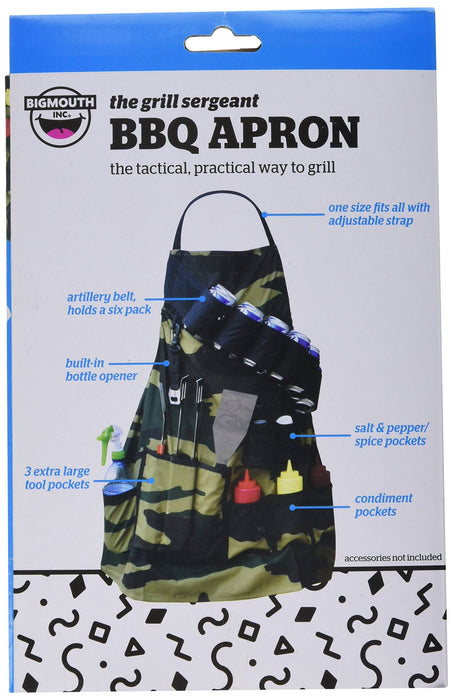BigMouth Inc The Grill Sergeant BBQ Apron, Cotton Camouflage Gag Gift for Cookouts, Adjustable Strap, Pockets and Bottle Opener Included