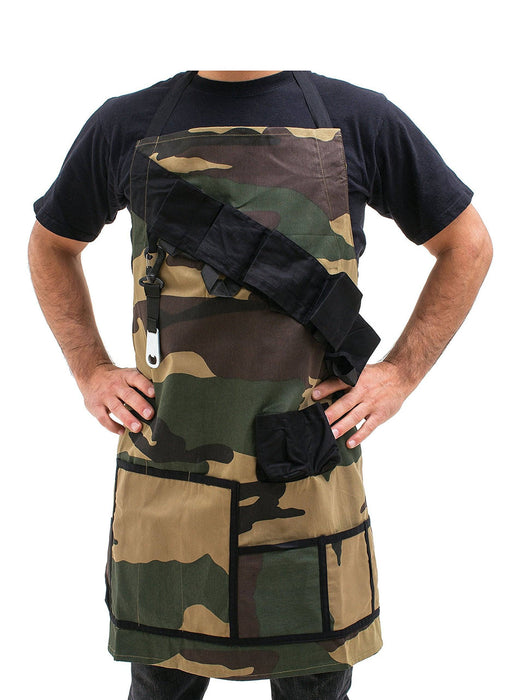 • Our unique camouflage grilling apron holds everything a real man could want or need for an afternoon of fun.