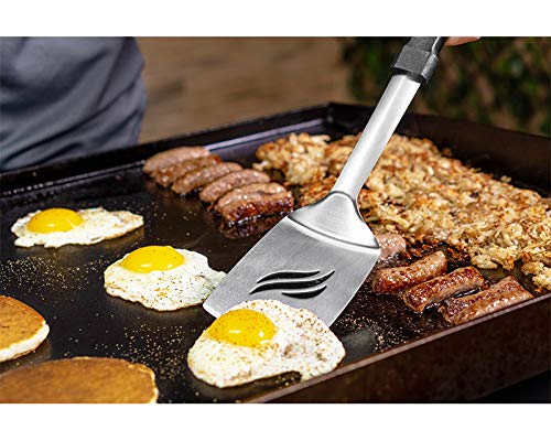 - DURABLE and CONVENIENT - Stainless steel griddle utensils are rust resistant, high quality and durable. Long lasting Flat Top Griddle BBQ Accessories. Easy to store and dishwasher safe, this convenient set has everything you need to make breakfast, lunch or dinner