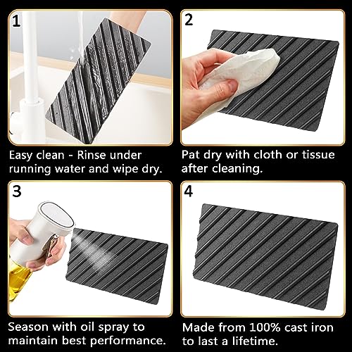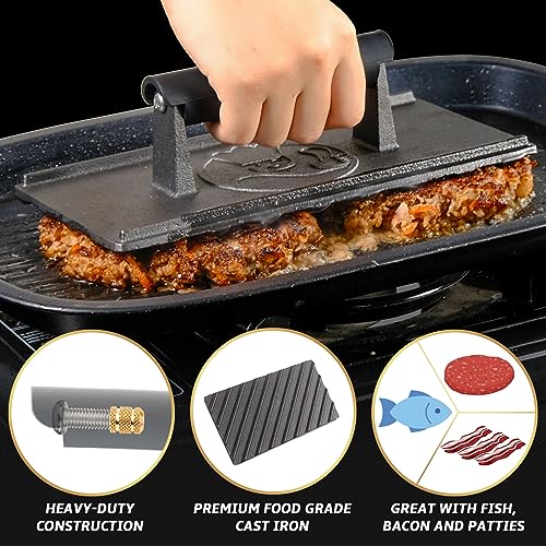 - LESS FAT, MORE FLAVOR - Are you looking for a healthier way of grilling and cooking? We got it for you! This fantastic cast iron press removes all unwanted oils and fats from your food. Use this griddle accessories to flatten your favorite thin meats to make them cook faster and more evenly.