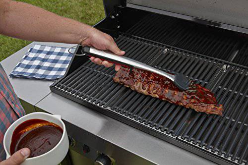 - Set Includes Comfort-Grip Spatula, Tongs, Basting Brush and Grilling Fork
