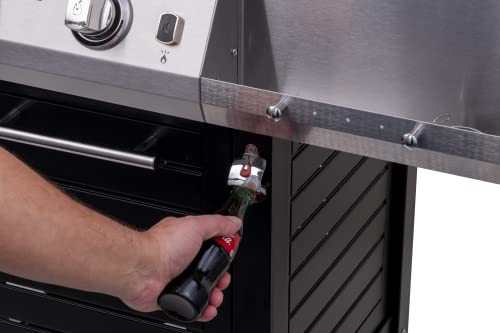 - STORAGE: Two-door slatted cabinet to conveniently store propane tank, grilling tools & accessories
