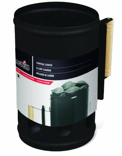 Details: Sure Fire Canister Style Charcoal Starter, Smoldering coals in minutes without lighter fluid. Will hold up to 4-Pound of briquettes. The heat shield keeps the bamboo handle cool. No assembly required. 10-1/2" Height by 6-1/2" Diameter