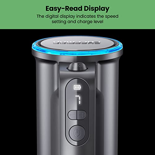 - KNOW WHEN TO CHARGE: The color-changing LED light ring on this handheld mixer lets you know the charge level at-a-glance, so you never get caught without enough power to finish mixing.