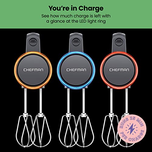 Chefman Cordless Hand Mixer, 7 Speed Electric Handheld Kitchen Food Mixer, Easily Whisk Eggs, Whip Cream, or Mix Cookie Dough, Digital Display, Dishwasher Safe Parts, and LED Charge Indicator Light