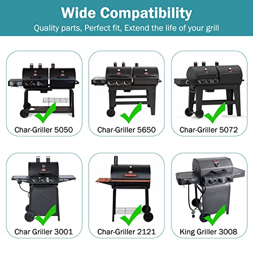 - ✅【Fits King Griller Grills】✅ Grill Grate Replacement Parts for King Griller 3008, 5252 Gas Grill. Cooking Grates for King Griller 3008, King Griller 5252. If you need to replace Chargriller 5050 replacement parts, char griller 5650 replacement parts, char griller 2121 parts, char griller 3001 parts, char griller 5072 replacement parts, this cast iron grate is the perfect choice for Chargriller 5050 5650 2121 3001 5072 gas grill.