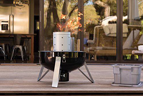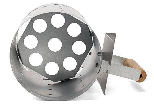 Details: If you don't use a charcoal chimney to light charcoal, it's time to start. Charcoal chimneys allow you to safely & conveniently light charcoal for a grill or smoker. Just crumple up some old newspaper & stick it in the space below the metal divider in the charcoal chimney & place the chimney on a charcoal grate on a grill or smoker. Then, load the area above the metal divider with your desired amount of charcoal. Use a lighter to light the newspaper through the large vent holes. Wait 10-20 Min (depending on the amount of charcoal) until most of the briquettes are partially covered in white ash & then your charcoal is ready to go! Features: Safely and conveniently light charcoal for a grill or smoker|Light charcoal without the use of lighter fluid|Lights charcoal in 20 minutes or less|Metal flaps extend from heat shield to protect handle from flames|Evenly spaced vent holes support various types of charcoal