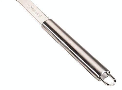 Details: The Cuisinart Stainless Steel Grill Brush is a great looking way to clean your grill. This brush is designed at an angle to reach over grill and clean the grate while the handle is made with a smooth steel tube that is comfortable to hold.