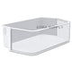 • This bin is made from clear and white plastic and is perfect for holding jars and bottles. Hand wash for best results. Easy to install: Just hook this bin into place on your fridge door. No tools necessary