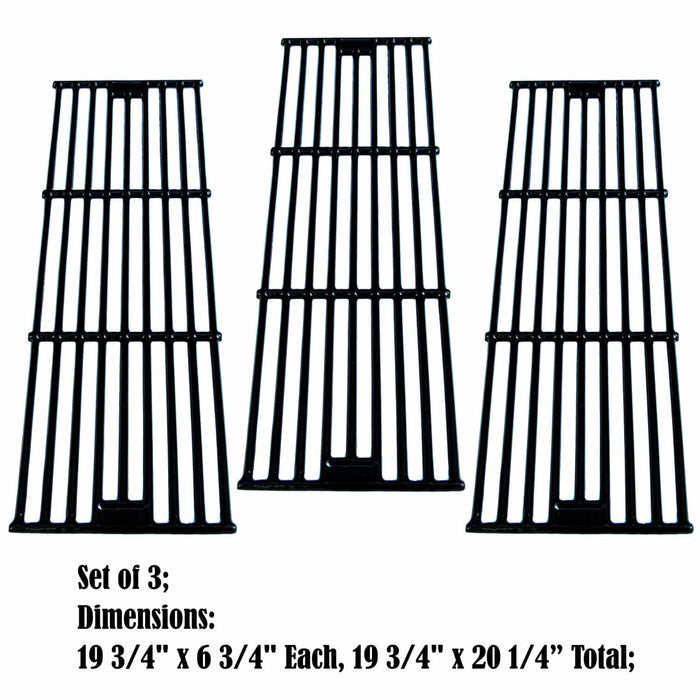 Details: Direct store Parts DC114 (3-pack) Porcelain Cast Iron Cooking grid Replacement Chargriller, King Griller Gas Grill;Dimensions: 3 Grids 19 3/4" x 6 3/4" Each or Total 19 3/4" X 20 1/4"; Material: Porcelain Coated Cast Iron;