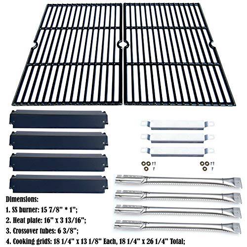 - Direct store Parts Kit includes 3 Stainless Steel carry-over tubes, 4 Stainless Steel burners ,4 Porcelain Steel heat plates, and 1 set of 2 Porcelain Cast Iron cooking grids