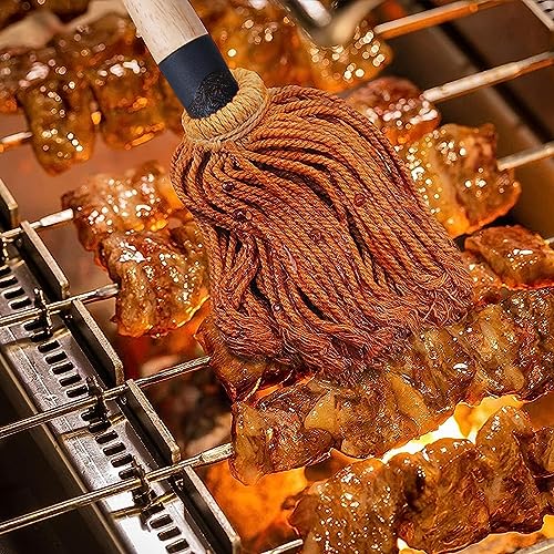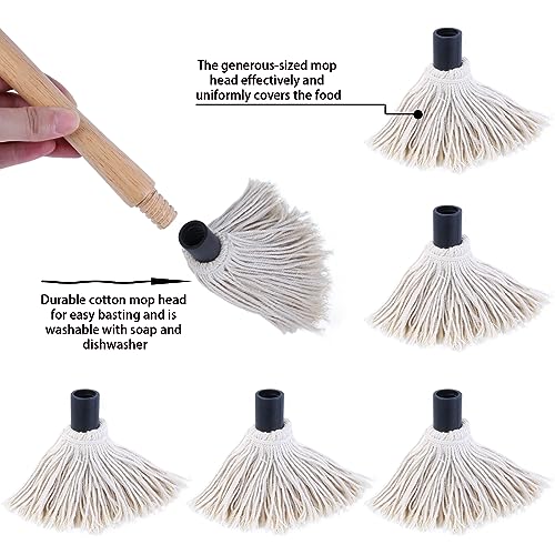 - ULTIMATE BBQ MOP BRUSH - with 6 extra replacement heads. This Convenient tool allows you to keep your barbecue moist, infuse it with flavor while cooking, and add sauce effortlessly. It outperforms silicone pastry brushes by picking up more thin sauces. With its versatility, it's the best mop for adding sauce, marinating, oiling, tenderizing grill, and smoking BBQ ribs, brisket, chicken, and pork. Complete your BBQ accessories collection with this must-have tool.