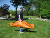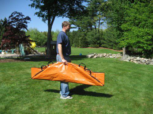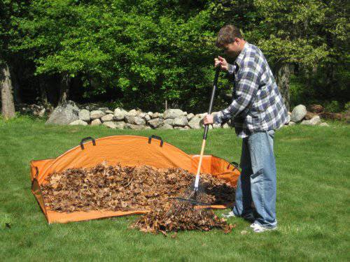 Details: From the Manufacturer The EZ Leaf Hauler makes any size yard clean-up a breeze. Simple and lightweight, the EZ Leaf Hauler is designed specifically to make moving large piles of leaves and brush easier and faster, allowing you to get to get back to your favorite fall activities. It measures 6-by 4-feet and provides up to 24 sq. ft. of surface area to work with. Constructed out of rugged woven tarp material for extra durability, it holds 5 times more than a wheelbarrow and requires no lifting. Just rake in debris and haul away. Cheaper and quieter than a blower, it requires no gas or maintenance. With 3 sturdy sides, ground stakes to hold it in place and 6 built-in handles, the EZ Leaf Hauler works like a giant dustpan and is great for any season clean small or large. Simply fold and store compactly out of the way when not in use. Includes 3 collapsible fiberglass tent rods for basic assembly and ground-stakes already attached. High quality, maintenance-free materials ensure years of hassle-free use and enjoyment.
