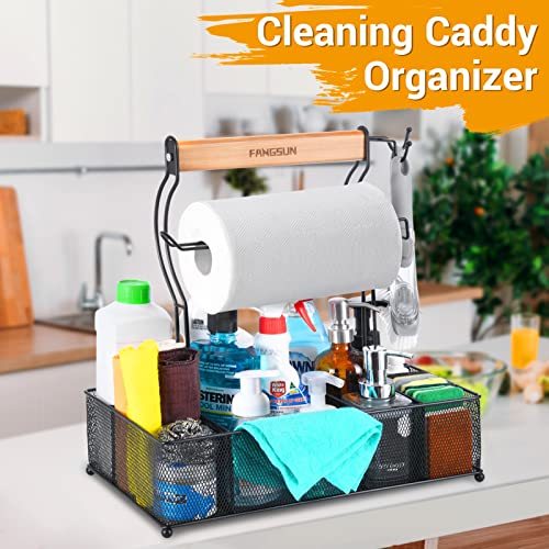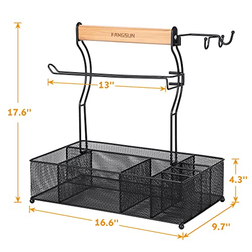 FANGSUN Large Grill Utensil Caddy, Picnic Condiment Caddy, BBQ Organizer for Outdoor Grilling, Camping Caddy with Paper Towel Holder for Plate Cutlery, Grill Accessories Storage for Tailgating, Black
