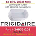 - Please confirm compatibility of the Frigidaire 240338201 Door Shelf Bin and your appliance with the manufacturer