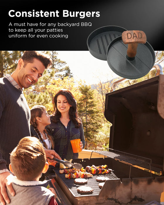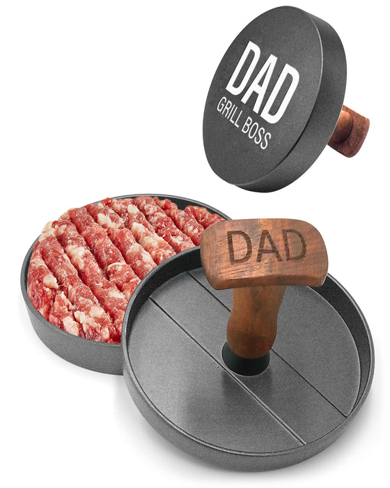 GALVANOX Grilling Gift for Dad, Non-Stick Hamburger Press Patty Maker, Aluminum BBQ Burger Mold “Dad Grill Boss” for Fathers Day/Birthday Boxed