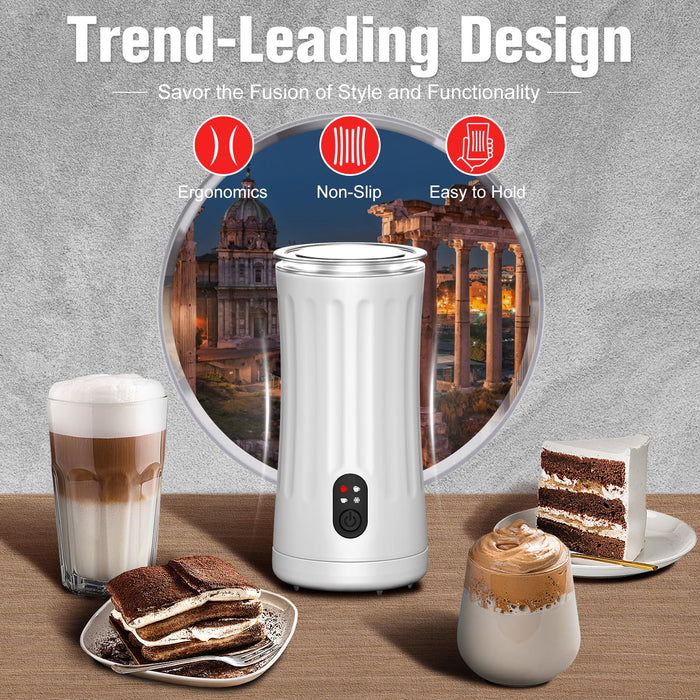 - [UNIQUE AND ELEGANT DESIGN]: The electric milk frother adopts an extraordinary shape inspired by Roman columns, which brings a pleasing visual experience and non-slip use experience.