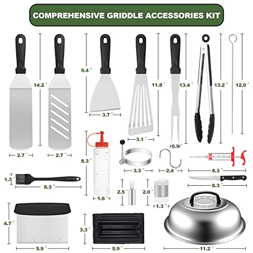 Griddle Accessories Kit, 43PCS Flat Top Grill Accessories Set for Blackstone and Camp Chef, BBQ Spatula Set with Enlarged Spatulas, Basting Cover, Scraper, Tongs for Outdoor
