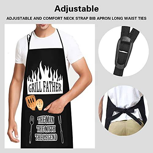 • Christmas Gifts for Husband: Funny aprons for men printed "Grill Father" and "The Man The Myth The Legend",can used as husband gifts from wife,christmas gifts for men unique,dad birthday gift,father's day gifts for men. Perfect for grill, grilling, cooking,BBQ,barbecue,kitchen,party,camping etc. Get this as a birthday gift for who loves to Grill.