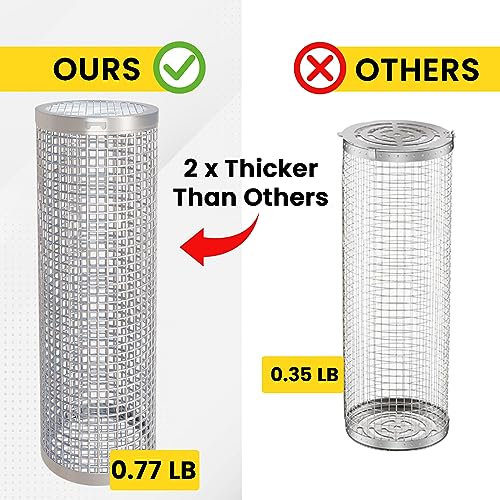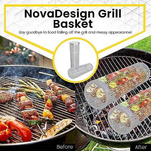 - Premium Quality Material: NovaDesign bbq grill basket is made of stainless steel (304) material that is suitable for foodstuffs and durable. We've gone the extra mile by redesigning this product with improved wire thickness and improved design, providing you with a grilling basket that's built to withstand frequent use and the rigors of outdoor cooking.