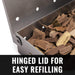 - HINGED LID FOR EASY ACCESS. Just pop it open (we'd suggest using a pair of our grill gloves for this) to add more chips and you'll be back smoking in no time.