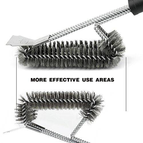 - ✅【5X FASTER CLEANING】The grill brush has three brushes in one, each with its own equivalent stroke, equivalent to 3 traditional brush. So clean 5x faster than ordinary bbq brush! Be prepared to clean every bit of residue with its innovative 360 degree rotator.