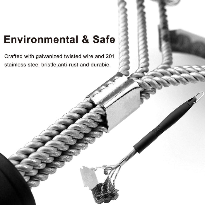 - ✅【BUILT TO LAST QUALITY】: 135% more rigid triple helix than other safe grill brush bristle free, ensuring its feature of DURABLE and LONG LASTING. 18'' tough plastic handle with a good grip, protects your hands from burning and ensures it will not bend or snap.